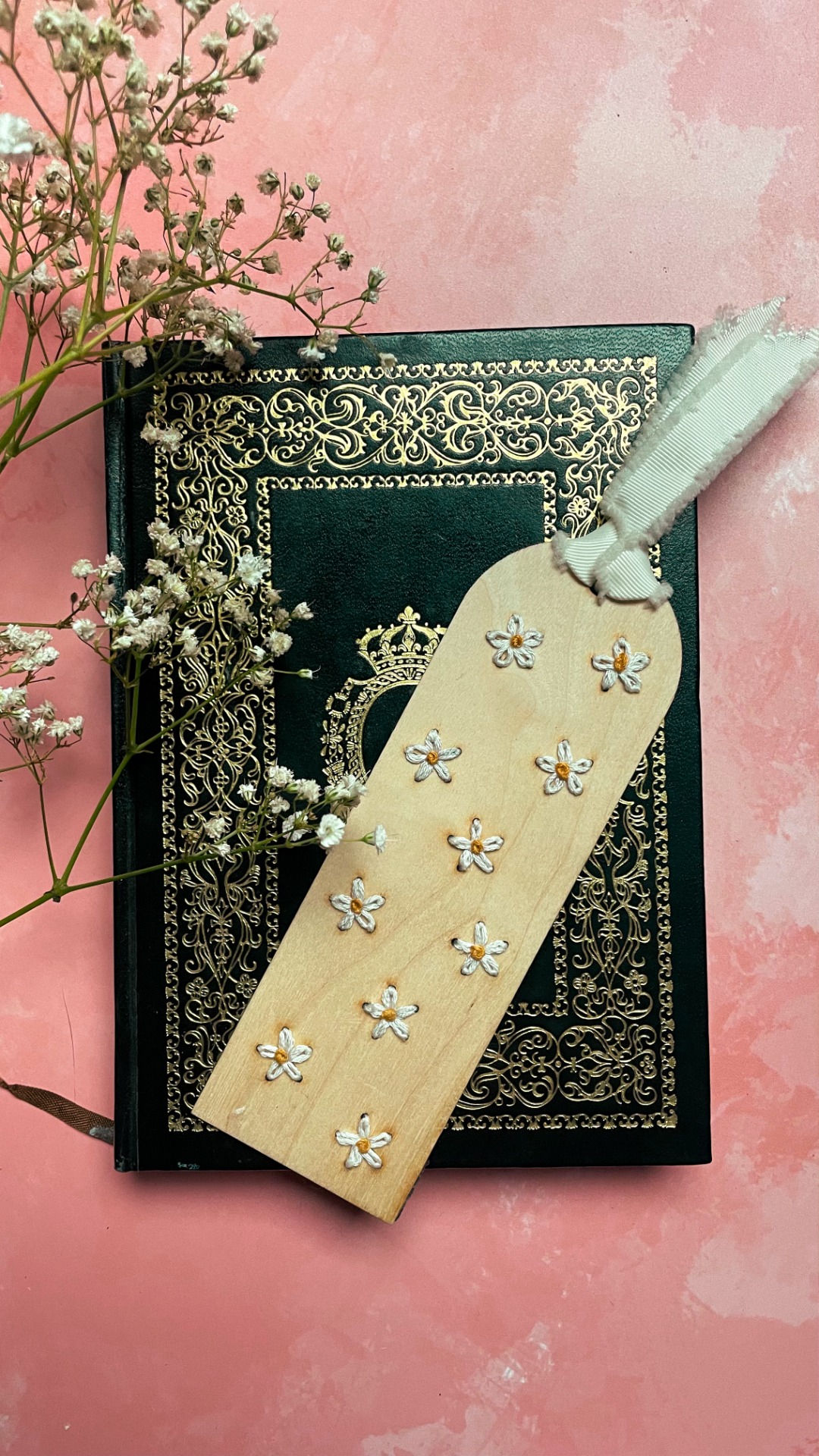 Voit maalata kirjanmerkin ennen kirjontaa, jos haluat. Valmistaja suosittelee yhtä tai kahta kerrosta akryylimaalia tai erikoispuumaalia.
